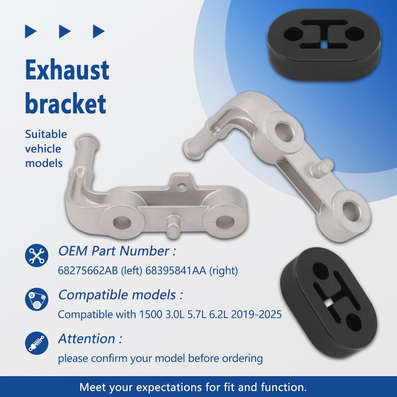 68275662AB 68395841AA Exhaust Bracket Muffler Support Assembly Fits Ram 1500 2019-2025 3.0L 5.7L 6.2L, with 2Pcs Hanger Rubber (Rear Left & Right)