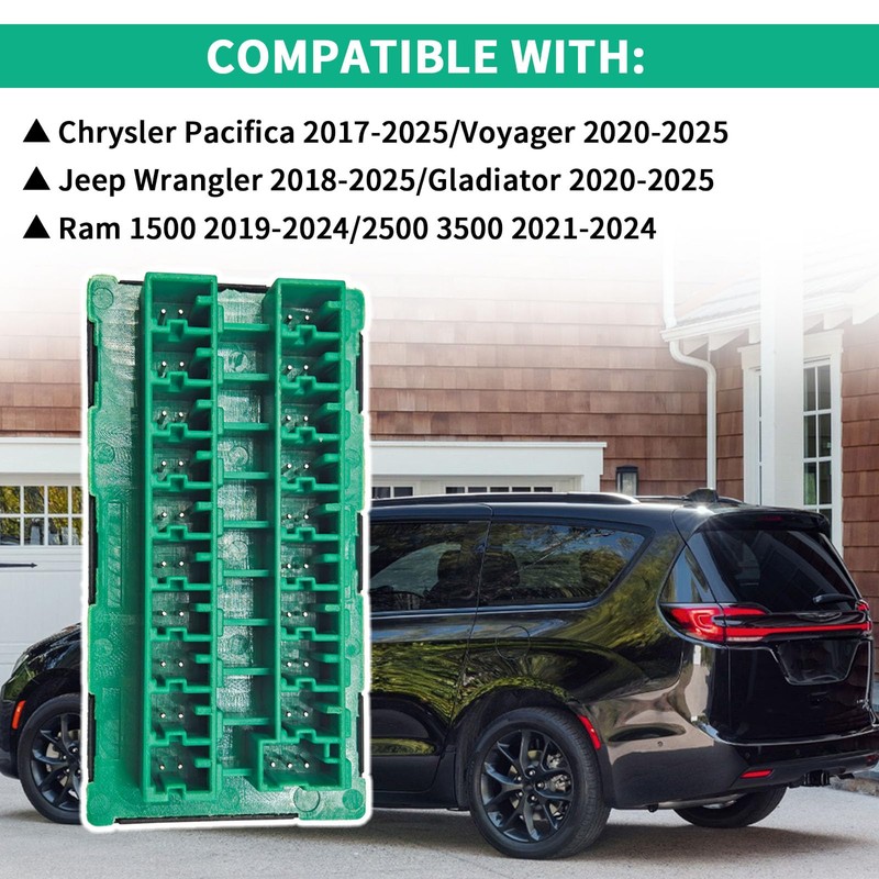 - COMPATIBLE WITH:This can-c bus splice block fuse connector compatible with Chrysler Pacifica 2017-2025/Voyager 2020-2025,Jeep Wrangler 2018-2025/Gladiator 2020-2025,Ram 1500 2019-2024/2500 3500 2021-2024