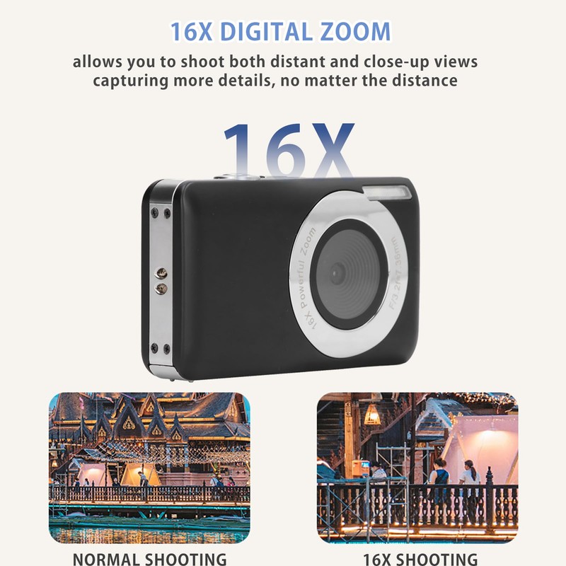 - 16X DIGITAL ZOOM: The 16X digital zoom allows you to shoot both distant and close‑up views, capturing more details, no matter the distance.