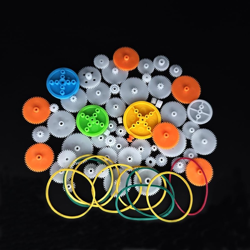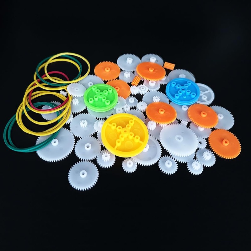- Application:68PCS Plastic gear set spindle gear single gear double reduction gear belt pulley with rubber band small motor gear for dc motor,rc car,truck,helicopter,robot,diy model toy gear replace kit,meet you diy project needs(Note: Due to the variety of gears, some styles and quantities may vary slightly)