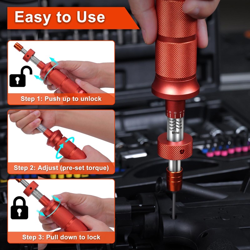 - Precision Torque Control (10-70 in-lb / 1.13-7.91 Nm): Professional-Grade Torque Screwdriver Kit. Dual-scale accuracy in 1 in-lb increments. Durable 40CR steel/aluminum body with clear orange/silver scale for sensitive tasks like machinery repair.