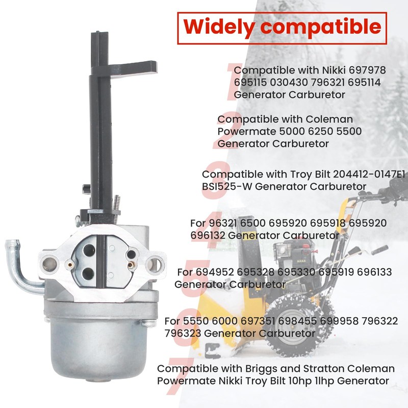 695115 697978 591378 030430 Carburetor For 796321 6250 695114 6500 2044120147E1 695920 Generator Carburetor Compatible with Briggs and Stratton Coleman Powermate Nikki Troy Bilt 10hp Generator