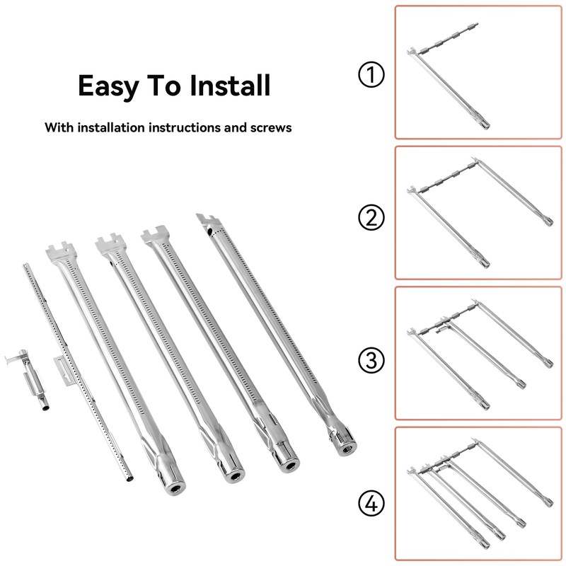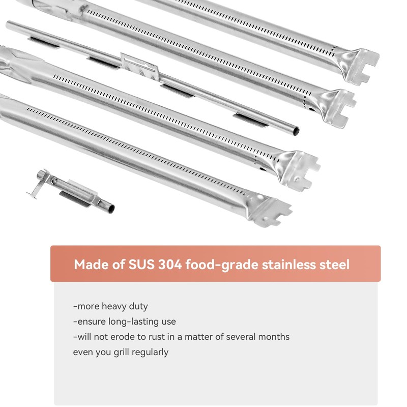 - 【Built to Last】- Made of heavy duty 304 stainless steel to ensure long-lasting use, non- Magnetic. Strong corrosion & heat resistant and heat preservation give us a great and safety barbecue experience. Great flame distribution, Do not chips, warp or rust out like other material. Compare with the original parts, the material of our grill tube burner are more heavy duty, last longer