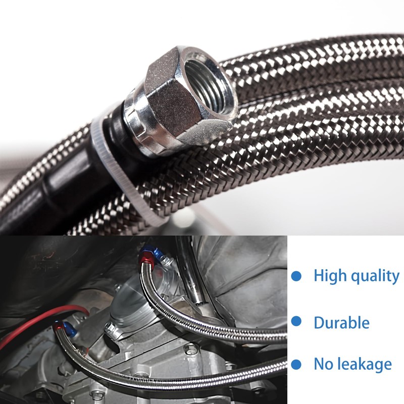 - 【Package Includes】 - 2 x 70 inch 3/8 I.D. Stainless Steel Braided Hoses; 2 x AN-6 flared to 1/4 In NPT billet adaptors; 4 x AN-6 flared to 3/8 In NPT billet adaptors; 4 x 90-degree AN-6 inverted flare to AN-6 flare billet adaptors; 2 x Aluminum 4L80E adapter fittings;4x 6AN Hose Separator Clamp+1 Tool.