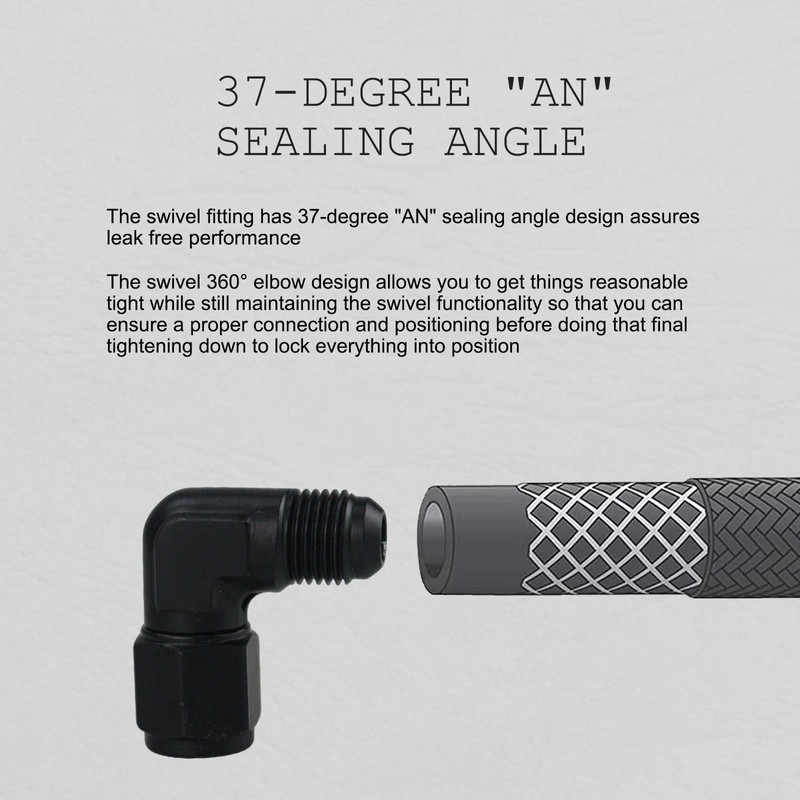 6AN Female to 6AN Male Flare 90 Degree Swivel Fitting Adapter Aluminum Black, Pack of 2