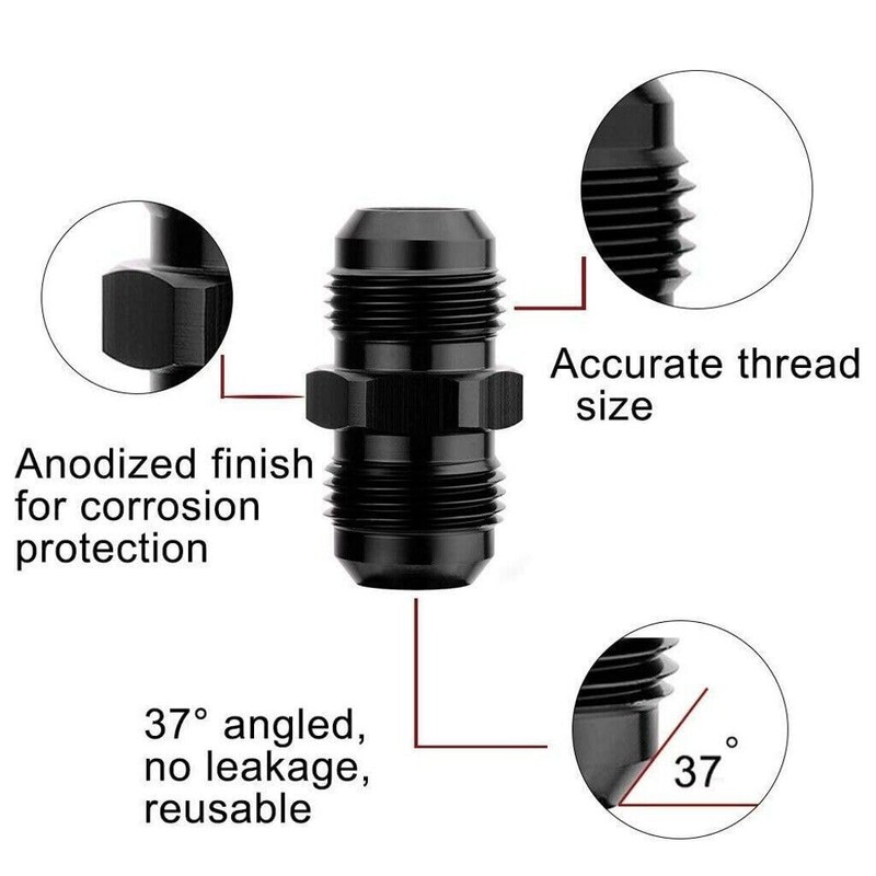 - 3,Black anodized lightweight 6061 AN aluminum -6AN fitting provides maximum flow and do not require sealing compound or Other tape, one-piece reusable fittings.