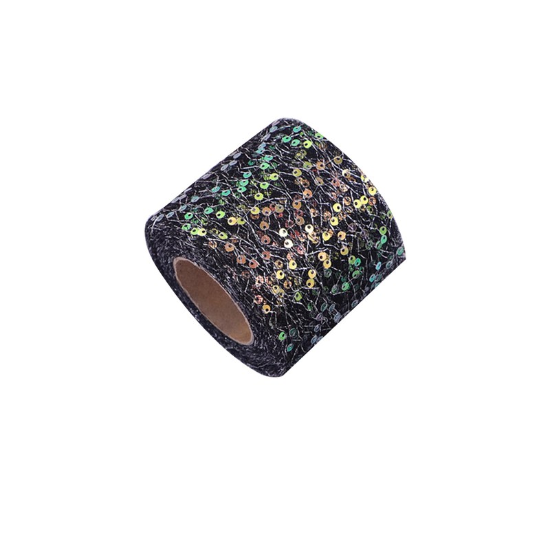 6cm*10 Yards Glitter Tulle Fabric Roll, Sequin Mesh Fabric, Sparkle Tulle Roll for DIY Crafts Bows Gift Wrapping, Black