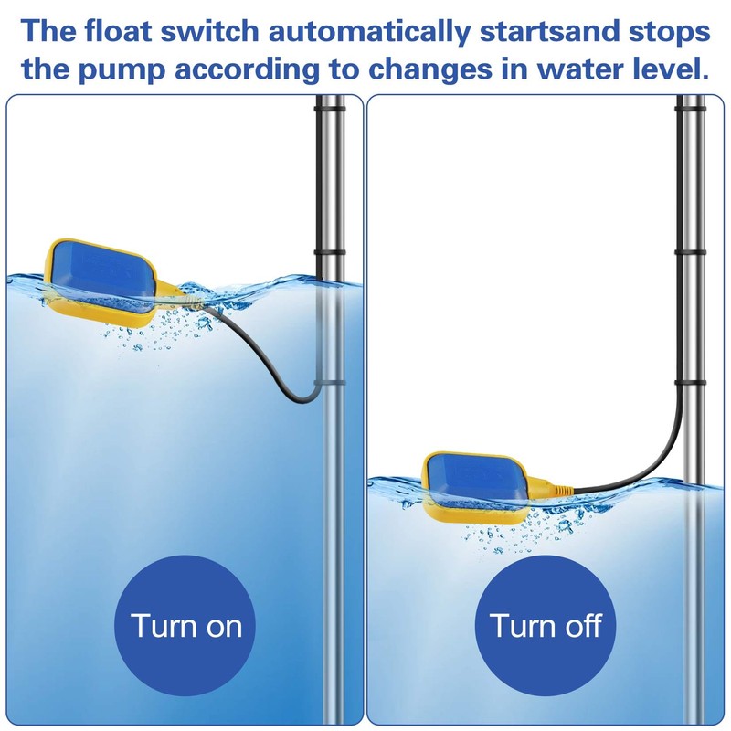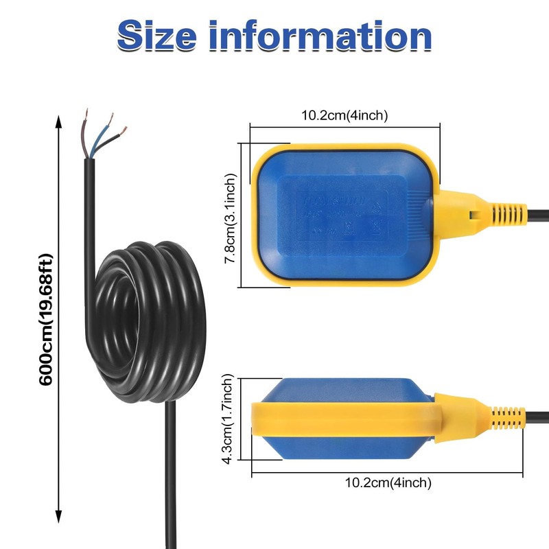 6M 19.7ft Cable Float Switch Water Level Controller for Tank Pump Sump Pump, ...