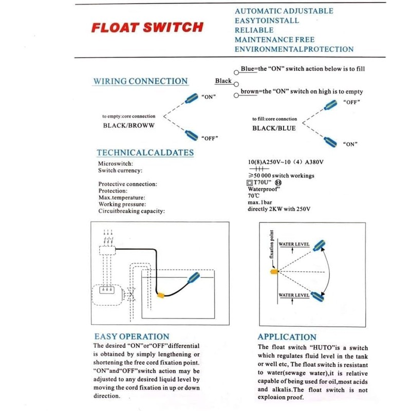 • Product Name: Float Switch Water Level Controller