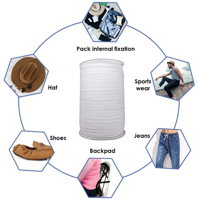 - FLAT ELASTIC STRING: It is made from elastic which makes it durable, sturdy, soft, flexible, and easy to cut and tie into secure knots. It is UV-sunlight protected, colorfast, washable, mildew resistant and has and long-lasting elasticity.