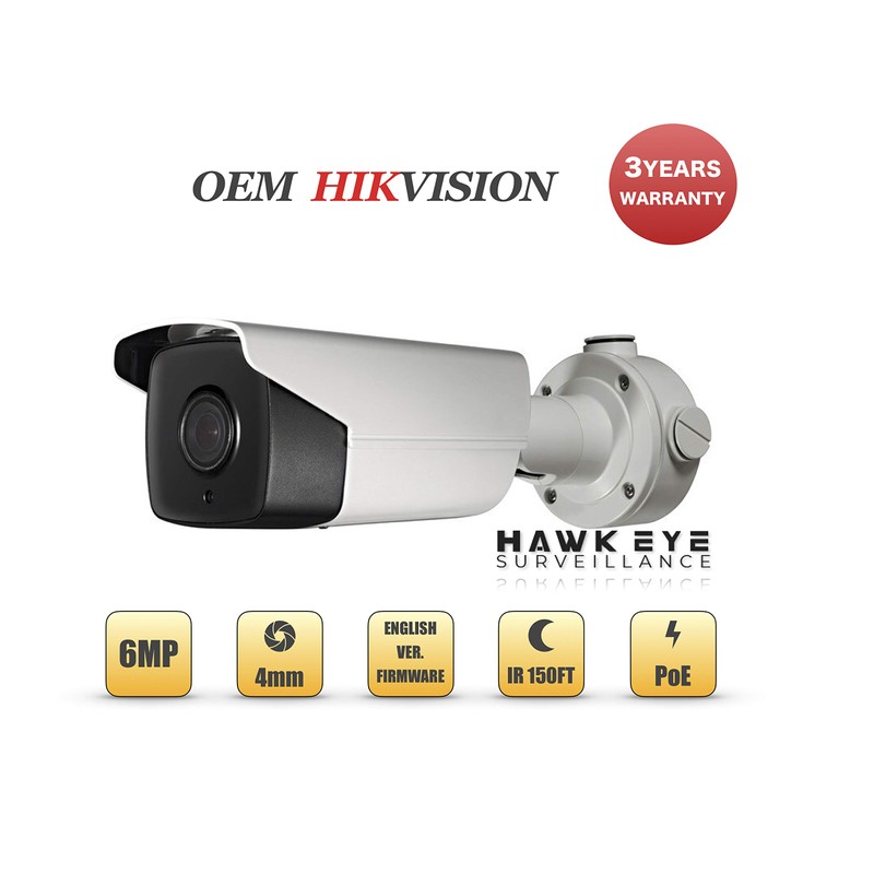 **The Hawk Eye 6MP Bullet Camera is the perfect camera for indoor and outdoor professional usage – featuring a high-resolution 6MP sensor with True WDR and a 4mm lens, the camera will capture a clear, wide image in any lighting situation. It also supports H.265+ video compression, which assures savings in bandwidth and storage.**