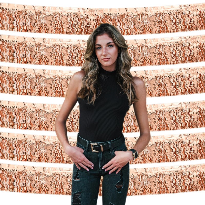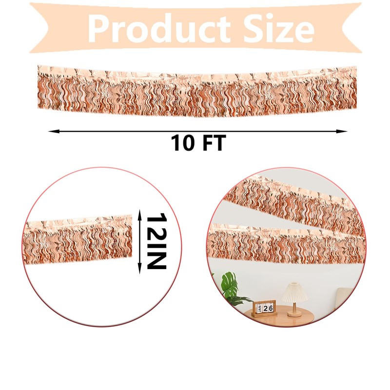 6P Wavy Metallic Foil Fringe Banner Tinsel Banner Backdrop Garland Curtains for Parade Floats Wedding Birthday Parties Decoration Halloween Christmas (rose gold)