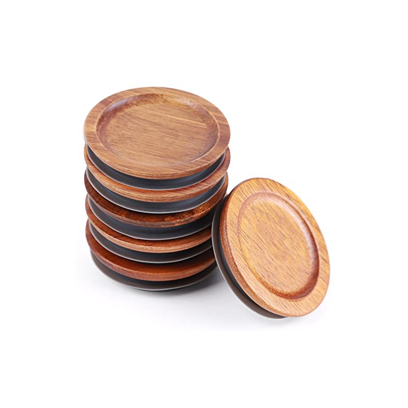 6Pack Regular Mouth Mason Jar Lids Acacia Wooden Storage Canning Jar Lids Bal...