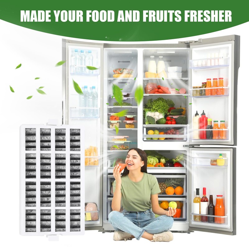 - 2.【EASY INSTALLATION】No tools required for installation. After using the filter, the odor of onions, garlic, fish, stale milk and other smelly foods will be greatly reduced. It helps your refrigerator fresh and odor-free.