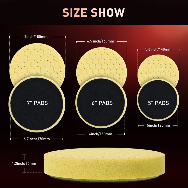 KUIMIT 6" Buffing Polishing Pads, 6Pcs 6.5inch 150mm for 6 Inch Backing Plate, Compound Buffing Sponge Pads and Woolen Pads Cutting Polishing Pad Kit for Car Buffer Polisher (Honeycomb Structure)