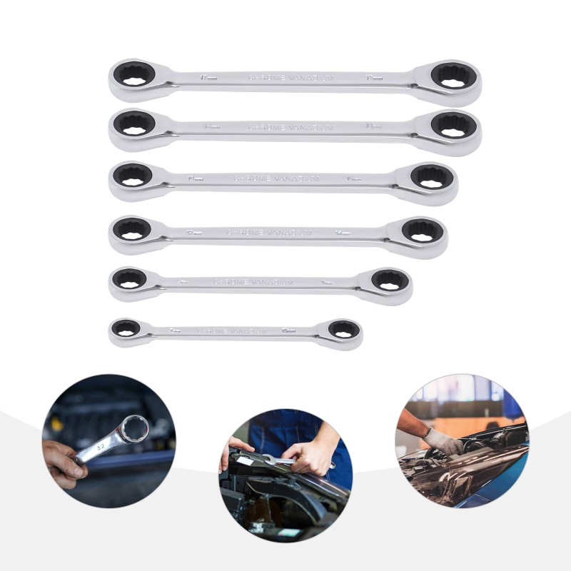 6PC NEW Double Box End Ratcheting Wrenches Extra Long Metric Universal