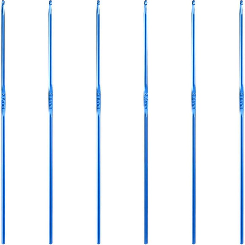 6Pcs 2.5mm Aluminum Crochet Hook Knitting Needles US Size C (Size 2) for DIY Yarn Craft,Nice Gift for Women Adults Kids Children Beginners (Blue)