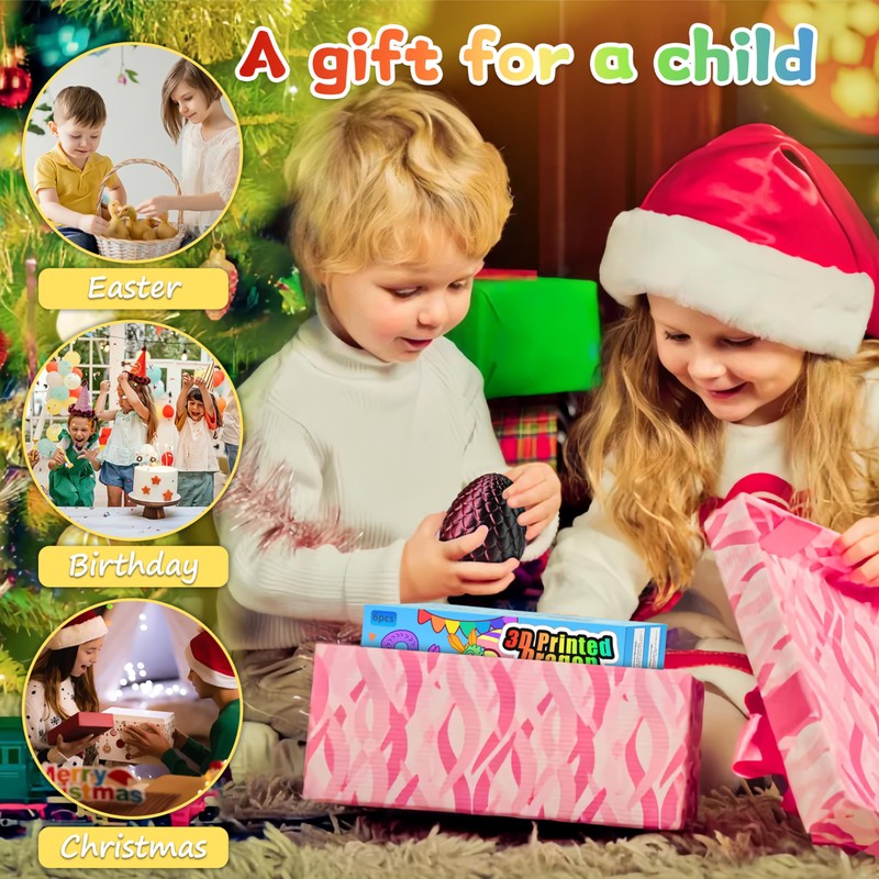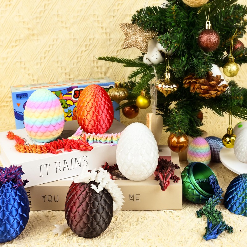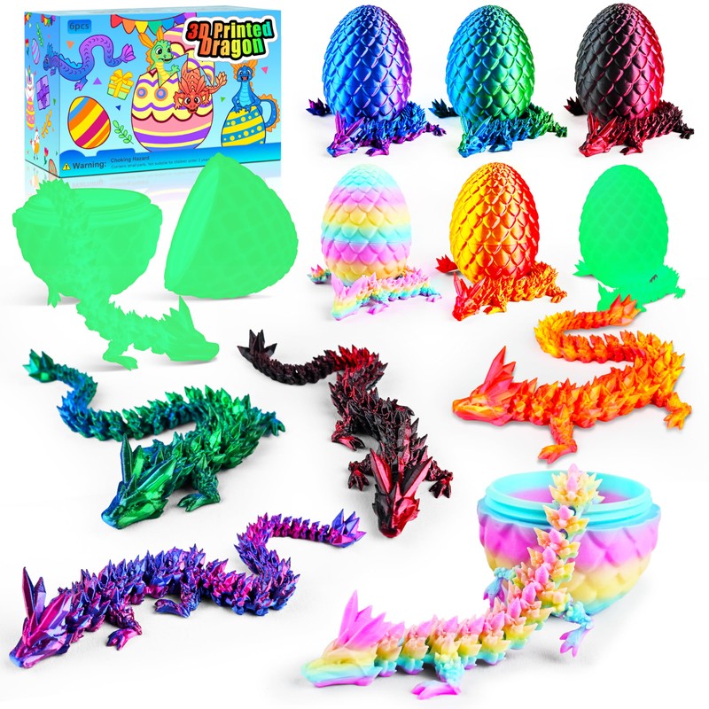 Impossmaker 6PCS 3D Printed Easter Dragon Eggs with 3D Printed Dragon Inside, Easter Basket Stuffers Mini Dragon Egg Set Articulated Crystal Dragon Fidget Toy for Adults Teens