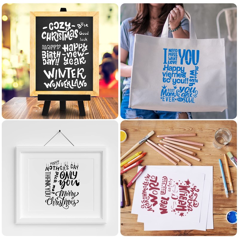 - MULTI-PURPOSE STENCILS: The inspirational quotes stencil is not only used for the side decoration, but also can be perfectly designed for occasions like birthday, halloween, thanksgiving, christmas, and scrapbooking, various craft projects, etc.