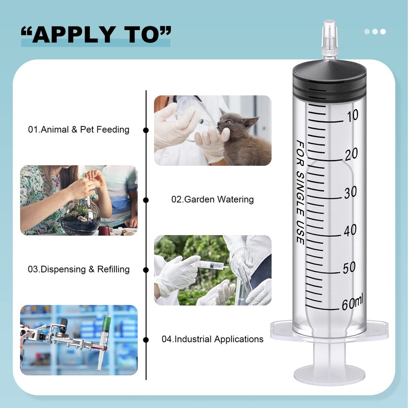 - Package Included: 6pcs 60ml syringes without needle with cap + 2 pcs 50cm transparent plastic tube.