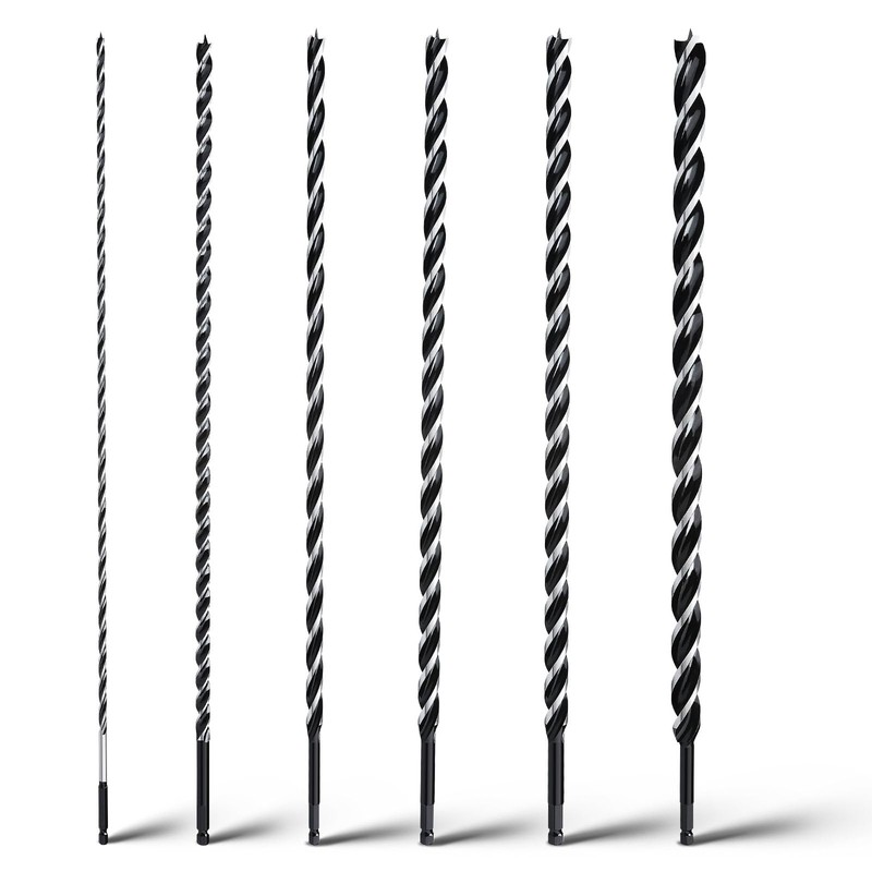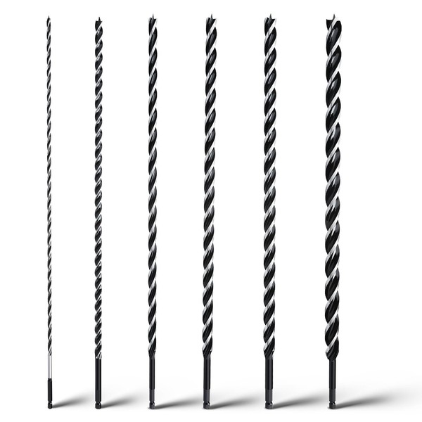 6PCS Auger Drill Bit 24" Long for Wood,Quick Change Hex Shank Tri Flute Wood Drill Bit for Soft and Hard Wood,Plastic,Drywall and Composite Materials(1/4",3/8",1/2",5/8",3/4",7/8")