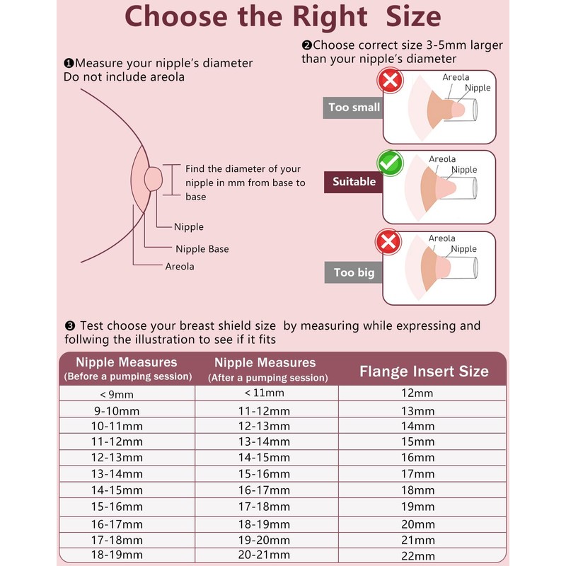 - 【11 Size Options&Customized Comfort】: Our flange insert is available in an extensive range of 11 standardized sizes(12mm-22mm available), designed to accommodate evolving dimensional requirements throughout different breastfeeding stages.Reduces standard 24mm nipple tunnel to custom sizes, preventing painful friction during breastfeeding. ( tips:If you are not sure about your size, please choose our 10PCS Flange Inserts so that you can pick the right size for yourself.)