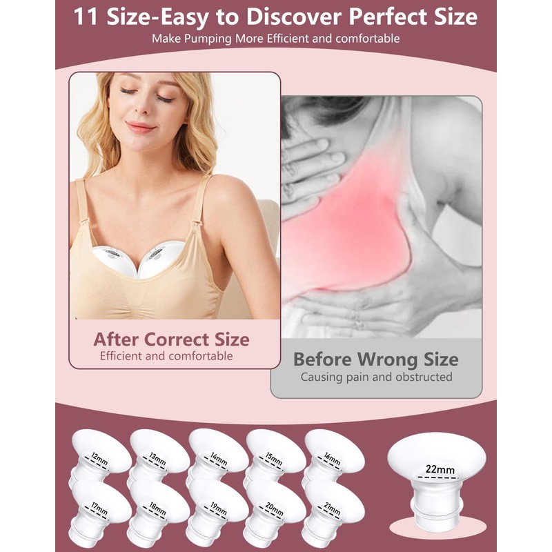 - 【11 Size Options&Customized Comfort】: Our flange insert is available in an extensive range of 11 standardized sizes(12mm-22mm available), designed to accommodate evolving dimensional requirements throughout different breastfeeding stages.Reduces standard 24mm nipple tunnel to custom sizes, preventing painful friction during breastfeeding. ( tips:If you are not sure about your size, please choose our 10PCS Flange Inserts so that you can pick the right size for yourself.)
