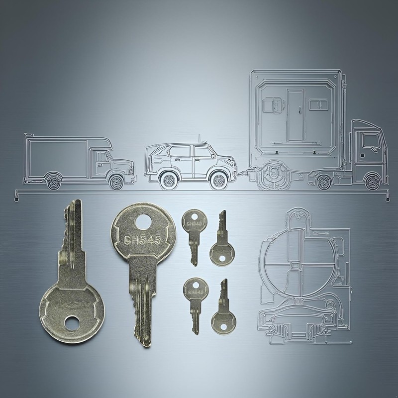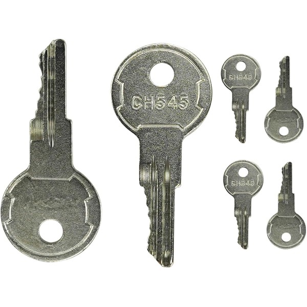 Secure your valuable equipment with this versatile 6-piece CH545 key set designed for multiple lock applications. These keys are specifically compatible with paddle handle locks commonly found on trucks, trailers, RV campers, car haulers, tool boxes, and safety cabinets. Perfect for fleet managers, RV owners, or anyone needing reliable access to multiple secured compartments. Each key in this comprehensive set is precision-cut to ensure smooth operation with compatible locks. Keep your equipment and belongings protected while maintaining convenient access with these durable replacement keys. Having spare keys on hand helps prevent lockout situations and keeps your operations running smoothly. These keys serve as essential backup solutions for various vehicle and storage security needs.