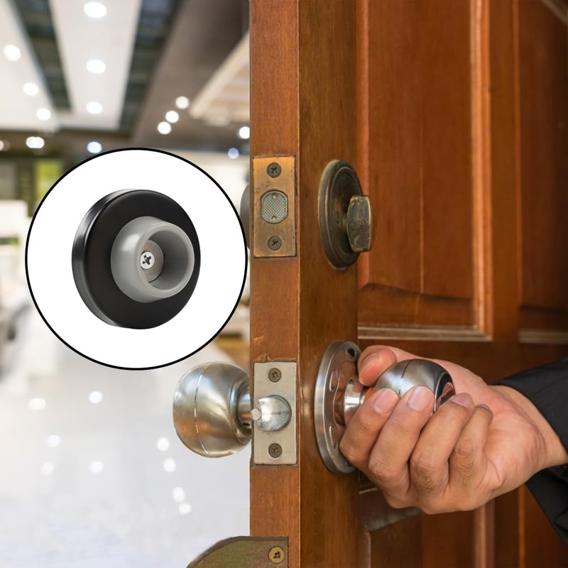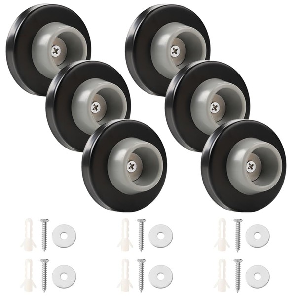 6pcs Concave Wall Door Bumper Stop Rubber Wall Mount Door stoppers Silver Stainless Round Door Knb Stop Protector Prevent Door Handle Damage Shield Walls, Easy to Install (Black)
