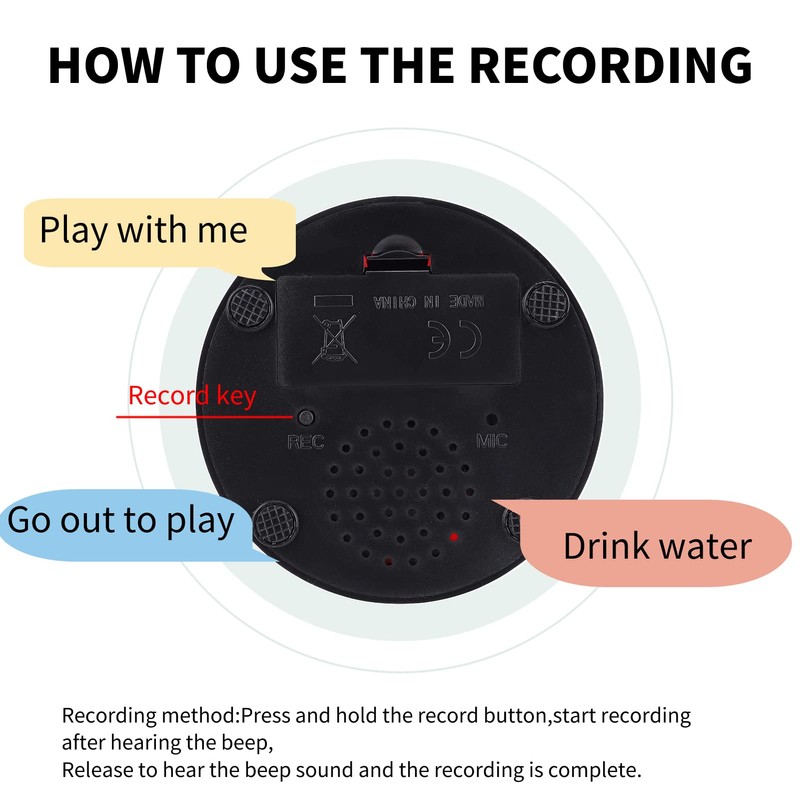• EASY TO OPERATE: just press and hold the record button (REC) at the bottom of the talking toys for pets to hear a beep, then you can record; After recording, you will hear the beep for twice to inform you that the recording has been completed, simply tap the top of the product to play the recorded language or music; The recording time can up to 30 seconds.