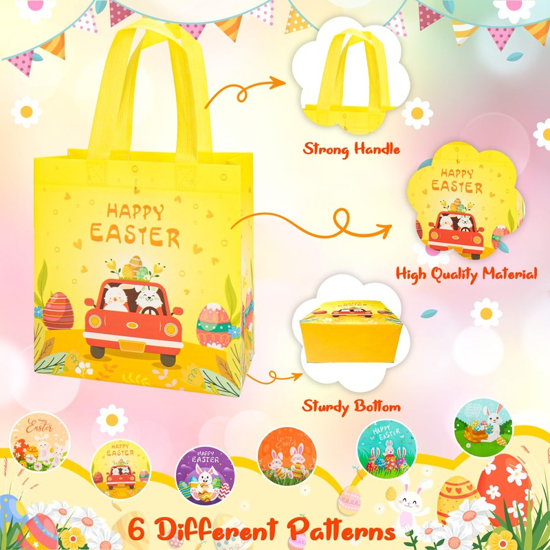 - 【High-Quality Material】Each Easter tote bag is made of high-quality non-woven fabric, which is strong and not easy to be damaged. You can use these gift bags instead of paper bags to carry gifts to reduce the risk of the bag tearing. Gift bags are waterproof, lightweight, very easy to clean, and can be recycled and reused.