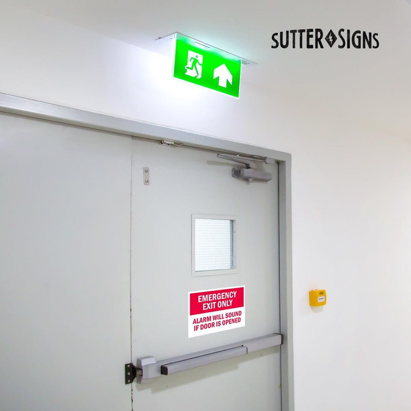 6pcs Emergency Exit Only Sign Stickers - Alarm Will Sound If Door Is Opened