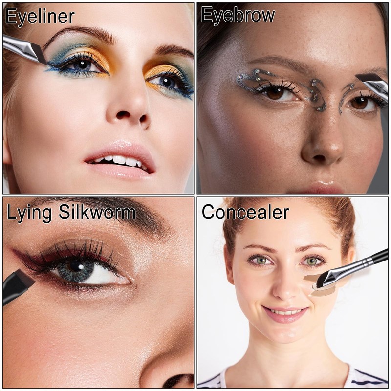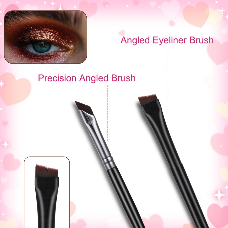- 【Angled Design】: The angled eyebrow brush facilitates precise outlining of both delicate and natural eyeliner and eyebrow shapes. It works wonders when applying a precise line to the upper and lower lash lines using liquid, gel, cream, or powder products.