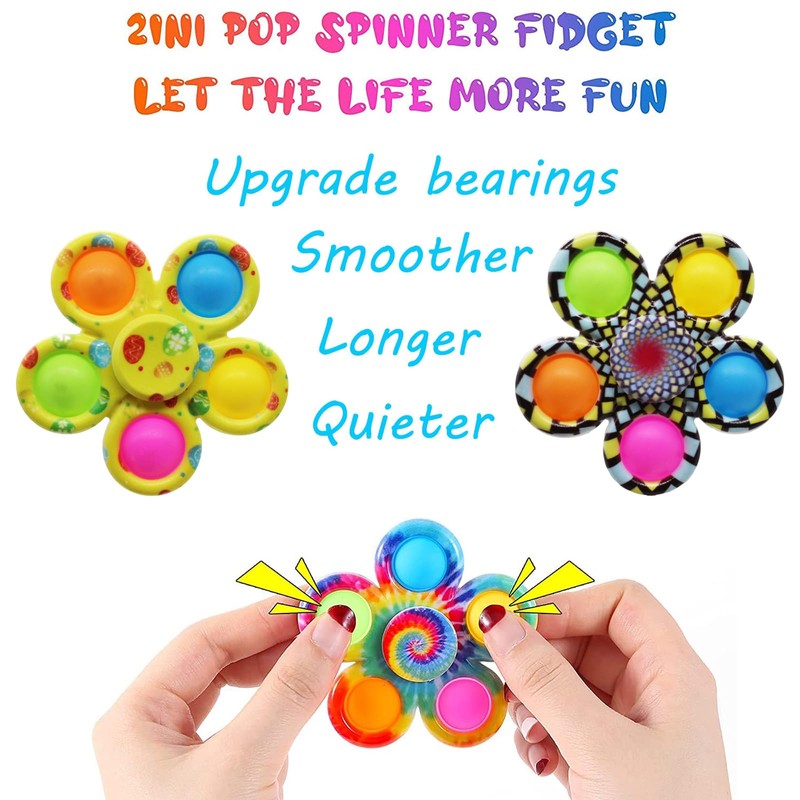 - 【Two Ways to Play】①These simple popper fidget spinners are super easy to play, Press the around dimple bubbles they make a slight sound,endlessly repeat, find the fun. ②It can also spin fast and smoothly, You can hold with one finger either side of the centre and then with your other hand turn. also can be used with one hand if you are skilled.