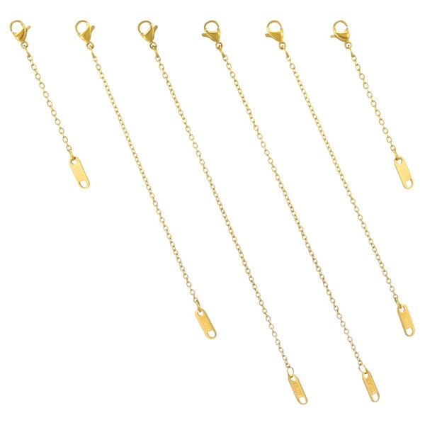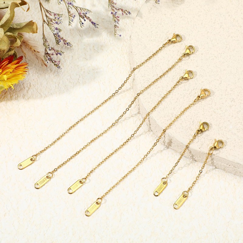 - VERSATILE LENGTHS: Our necklace extenders gold set includes 6 pieces in 3 different sizes 5/10/15cm (2"/4"/6"), allowing you to customize the length of your jewelry with ease. These gold chain extenders for necklaces are nice for anklets, and bracelets too.