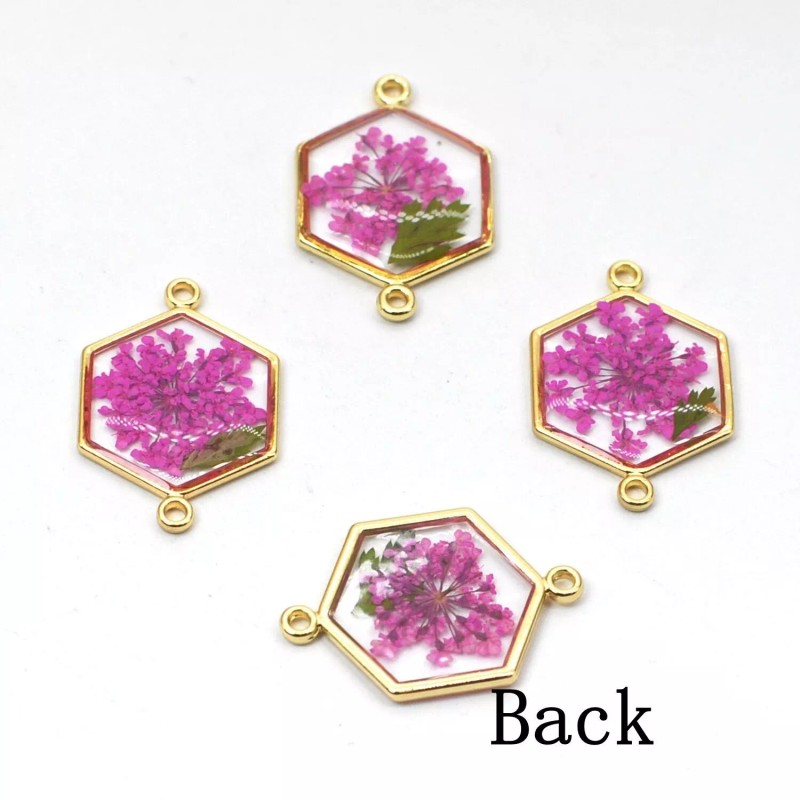 6PCS Gold Tone Queen Anne's Lace Flower Resin Hexagon Charm Connector GYX853