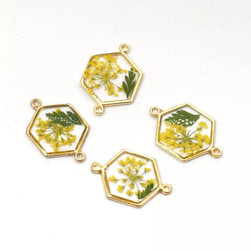 6PCS Gold Tone Queen Anne's Lace Flower Resin Hexagon Charm Connector GYX854