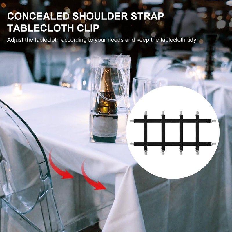 6pcs Hidden Strap Tablecloth Clips, Tablecloth Secure Straps Under Table Clot...