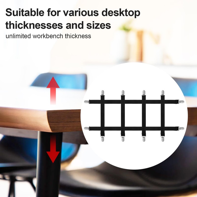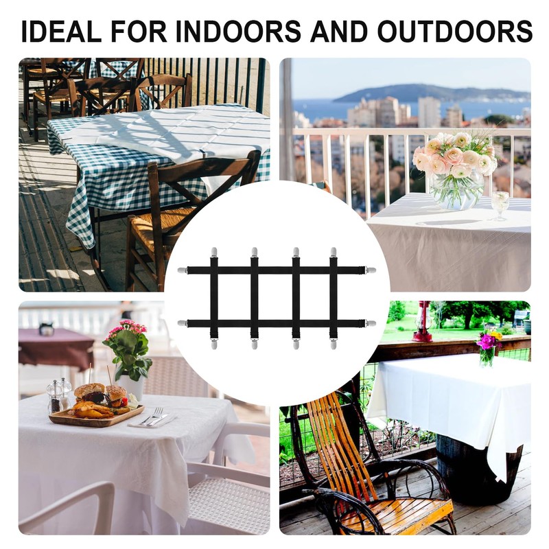• Package Content: You will receive 6 elastic strap clips, four short and two long, suitable for any table thickness and size, versatile, perfect for indoor and outdoor large and small tables, sofas, beds.