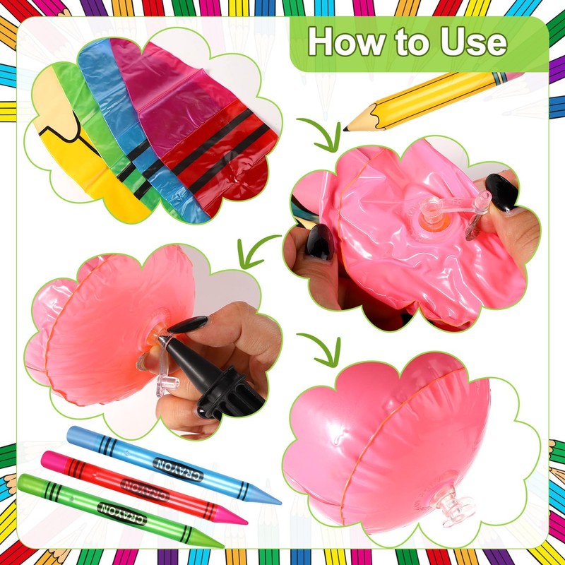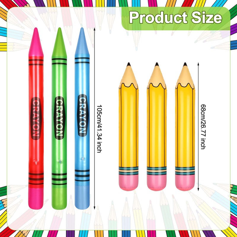 - Package Content: You will receive 6 pieces of inflatable pencils and crayons. The bright colors surely grab everyone's attention and create a fun and vibrant atmosphere.