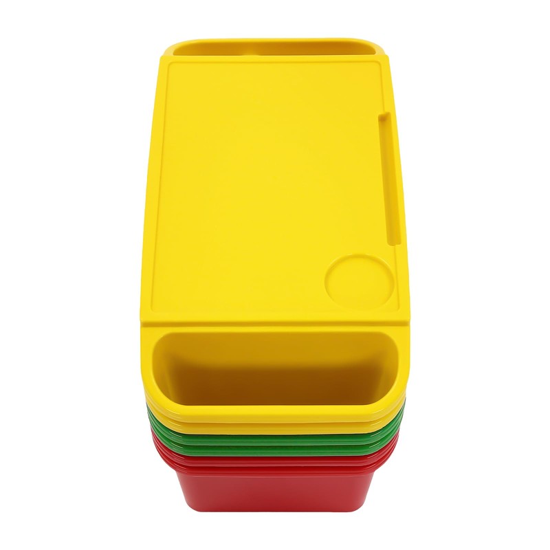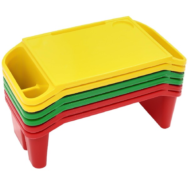 6Pcs Kids Lap Desk Tray, Plastic Breakfast Laptop Trays with Side Pockets, Portable Activity Table, Portable Lap Bed Table for Classroom (Red, Green, Yellow)