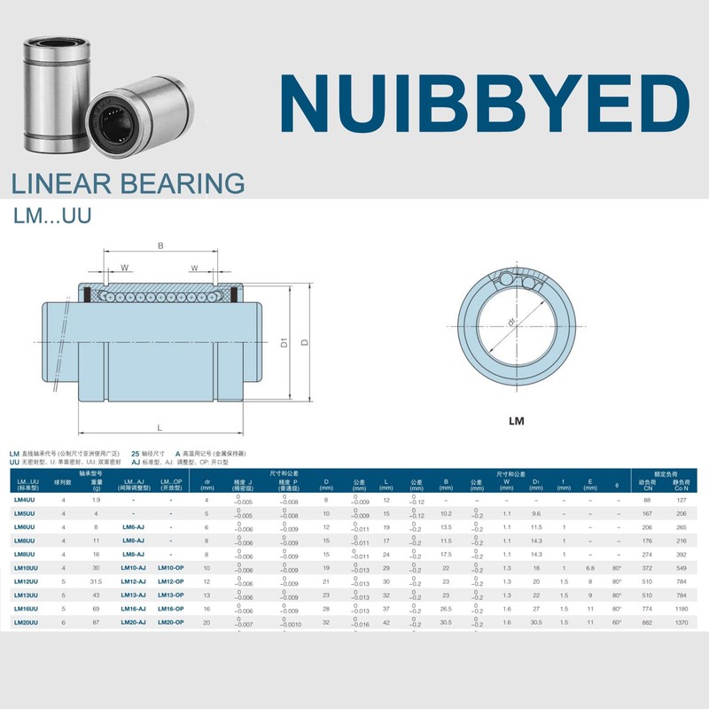 - Model: 6pcs LM20UU,Bore Diamter (dr): 20mm,Outer Diameter (D):32mm,Total Length (L): 42mm.