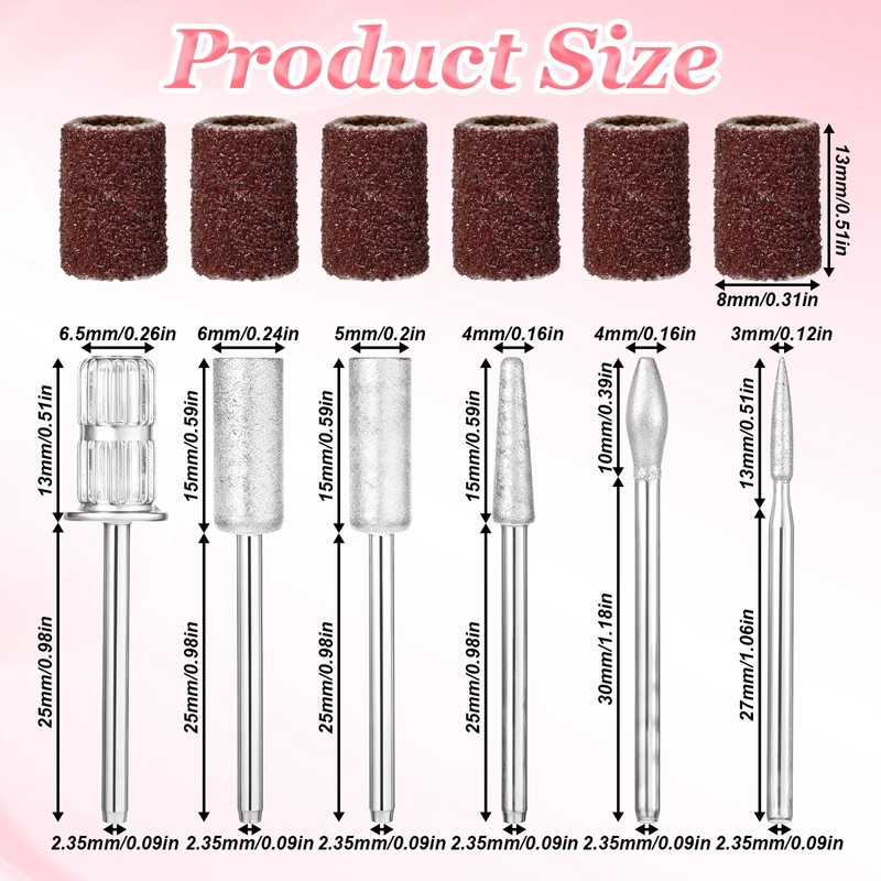 6Pcs Nail Drill Bits Set 3/32" Nail Drill Bits Sanding Bands Nail Drill Bits for Machine Replacement Electric File Nail Bits for Acrylic Gel Nails Cuticle Manicure Pedicure Polisher