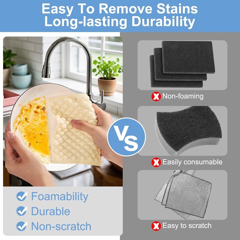 - 【Scratch-Free Surface Protection】Made from 80% polyester and 20% cotton, this non-scratching scrubber safely cleans nonstick pans, ceramic dishes, glass cooktops, and enamel surfaces without leaving scratches. It’s tough on grease yet gentle on delicate finishes—ideal for maintaining cookware integrity