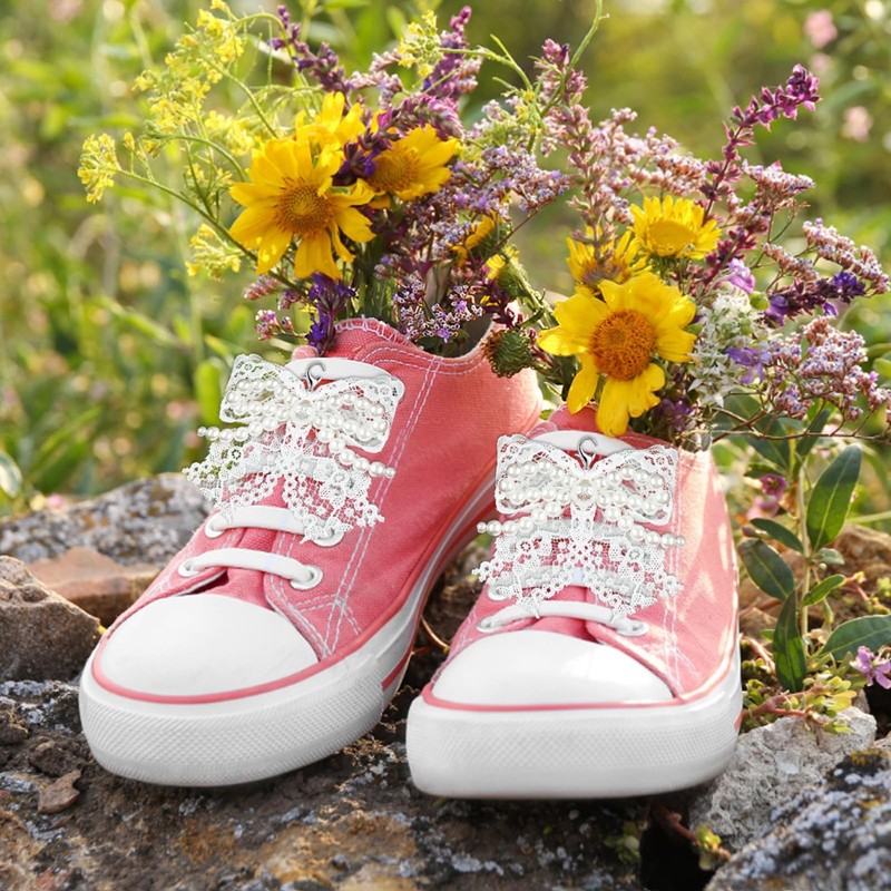 - 【Easy To Use】Our shoe lace charms for sneakers products are easy to use and can be installed without additional tools. This pearl lace bow shoe decoration is intimately equipped with an installation buckle, which can be buckled directly when used, which is convenient and quick. Designed specifically for female friends. Installed on sneakers or formal shoes, shoe jewelry can add vitality and make the shoes full of charm. They are full of girlishness.