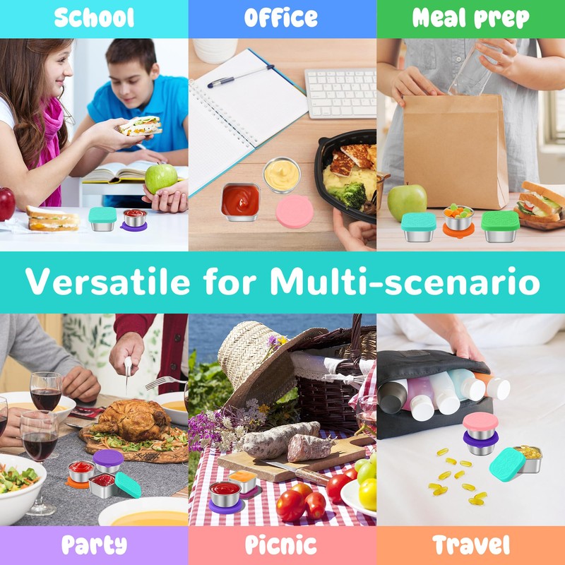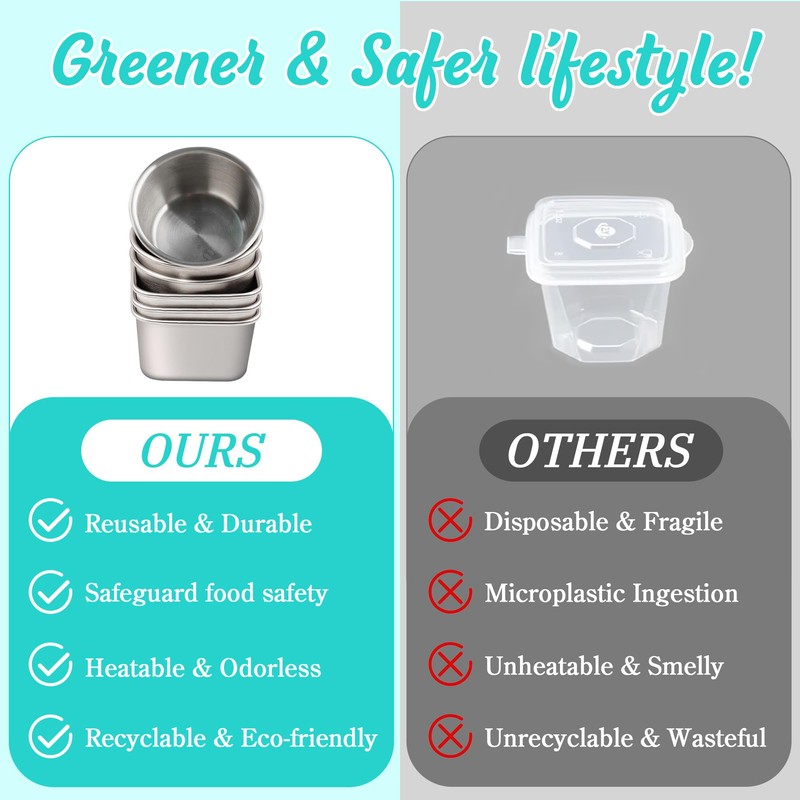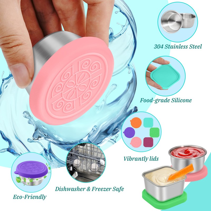 - 【RELIABLE MATERIAL】: Our condiment containers with lids is made of quality 304 stainless steel and food-grade silicone, non-toxic, BPA-free, dishwasher and freezer safe. Our salad container for lunch can be reused for a long time, protect you from microplastic intake and achieve environmental protection