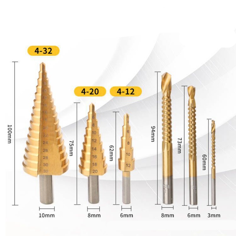 6PCS Step Drill Bit Set Metal Wear Resistant High Hardness Reaming Step Drill Bits with Storage Box 3PCS Step Drill 3PCS Saw Drill 103mm / 4.1in