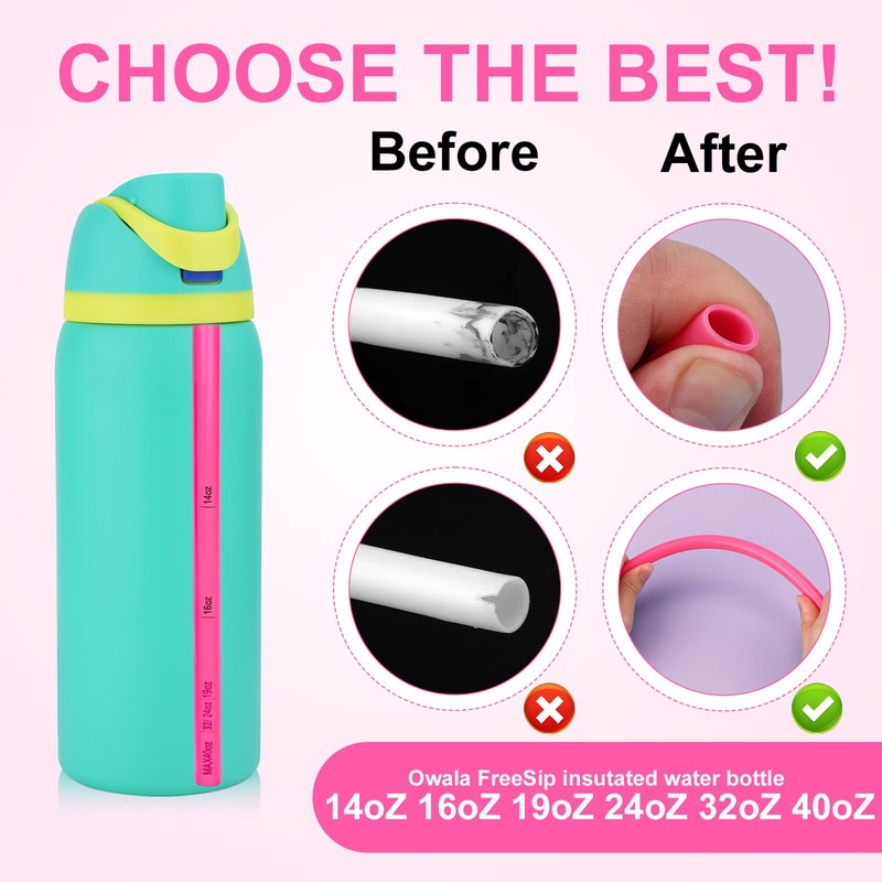 - Warm Tip: Please note that our graduated straws are specially designed for Owala FreeSip. If you want to use them for other types of water bottles, please check the size carefully before ordering.