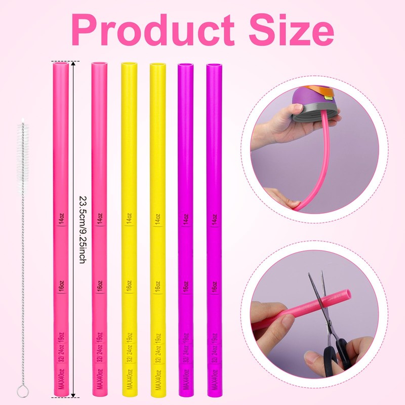 - Package Included: You will receive 6 pieces of replacement straws with graduations and 1 straw cleaning brush. Straws have 3 colors, including purple, pink and yellow. Sufficient quantity and colors will meet your needs.