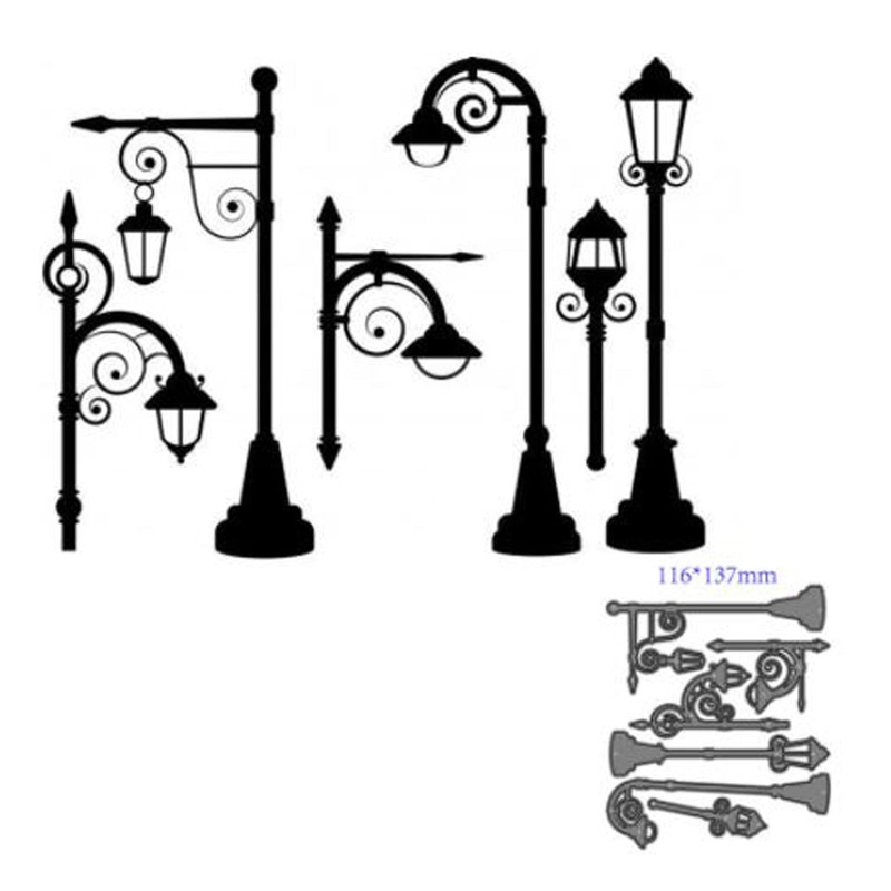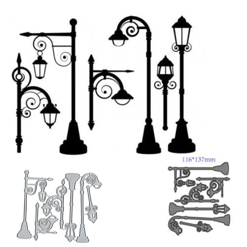 6pcs Street Lamp Metal Die Cuts,Merry Christmas Street Lamp Cutting Dies Cut Stencils DIY Scrapbooking Decorative Embossing Paper Scrapbooking Card Making